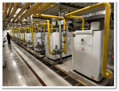 采用15臺(tái)卡吉1400kw卡吉斯全預(yù)混高效低氮燃?xì)鉄崴仩t為小區(qū)提供采暖。